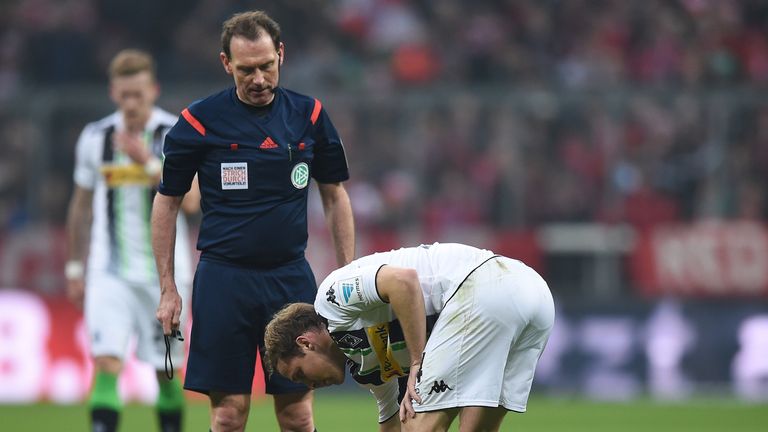 Arjen Robben was injured by a tackle from Gladbach's Tony Jantschke.