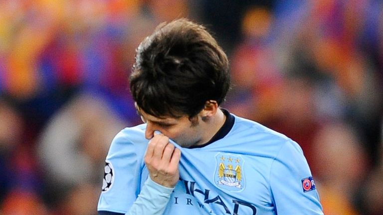 Manchester City's David Silva reacts after defeat to Barcelona.